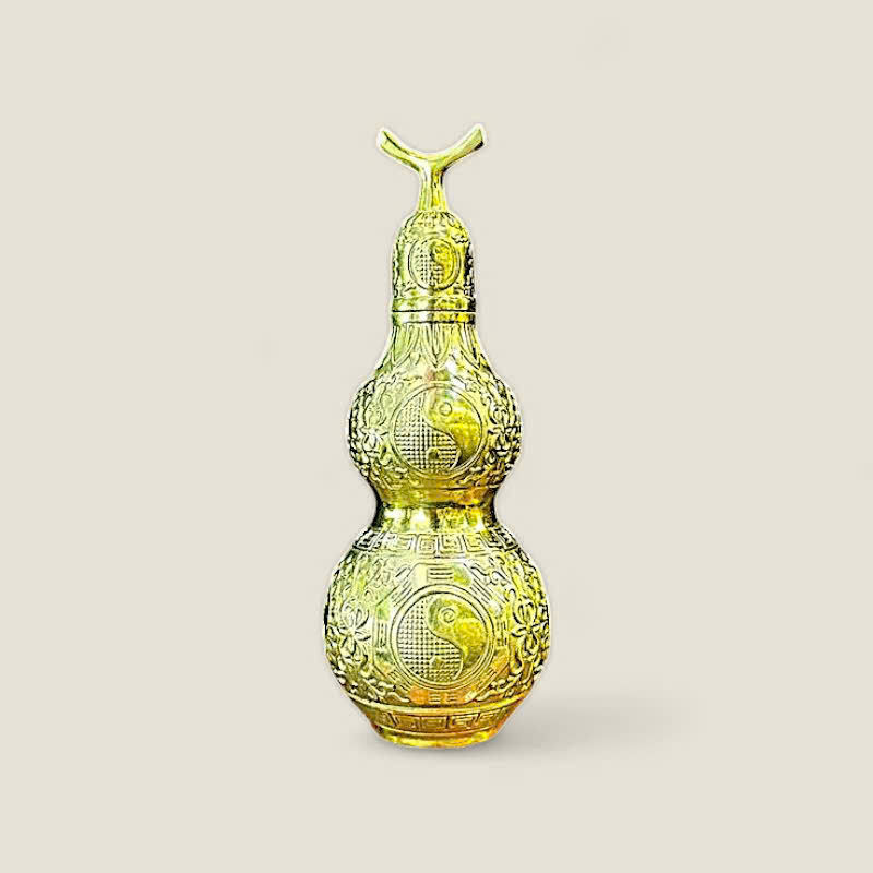 Thiết Kế: Hồ lô được tạo tác theo hình dáng bầu nậm (hai bầu) truyền thống (miệng nhỏ, bụng lớn), là pháp khí chuyên dùng để thu nạp khí. Toàn bộ thân bình được chạm khắc nổi tinh xảo hoa văn Bát Quái (Âm Dương và Tám Quẻ) trên cả bầu trên và bầu dưới, tạo nên lớp bảo vệ toàn diện và sự cân bằng hoàn hảo. Phần đỉnh hồ lô có thiết kế chắn chắn và kín đáo, biểu thị cho khả năng tích tụ linh khí và hóa giải sát khí.