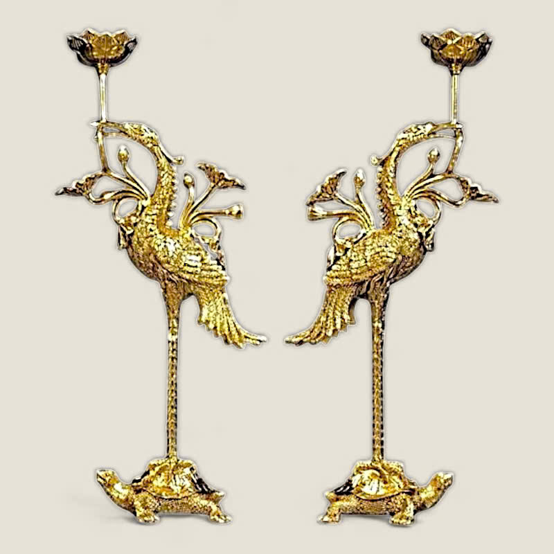 Ý nghĩa: Hạc và Rùa là hai linh vật mang ý nghĩa phong thủy sâu sắc. Hạc tượng trưng cho sự trường thọ, may mắn và sự thanh cao, còn Rùa biểu tượng cho sự bền bỉ, nhẫn nại và sự bảo vệ. Cặp hạc đứng trên lưng rùa mang ý nghĩa cầu chúc sức khỏe và tuổi thọ, đồng thời mang lại sự bình an, tài lộc cho gia chủ. Sản phẩm thích hợp để trang trí, làm quà tặng cho người thân, bạn bè.