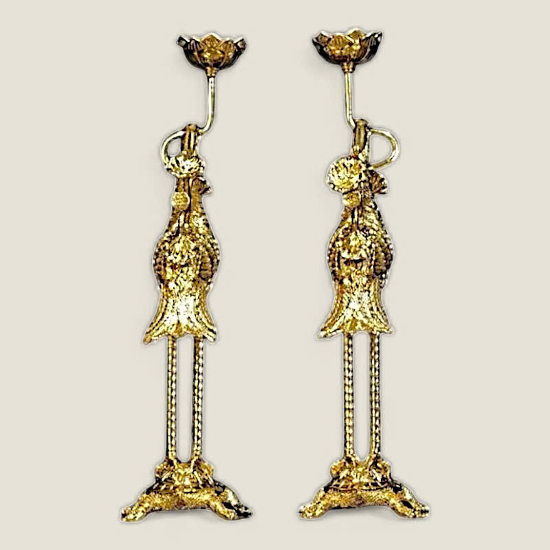 Chất liệu: Sản phẩm được làm từ đồng, đúc nguyên khối, đảm bảo độ bền và tính nghệ thuật cao. Bề mặt tượng được phủ màu vàng sáng, lấp lánh, làm nổi bật đường nét chạm khắc.