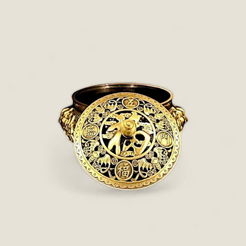 Chất Liệu: Sản phẩm được đúc từ đồng nguyên khối, với lớp hoàn thiện màu đồng vàng sáng bóng, thể hiện sự tôn nghiêm và giá trị tâm linh cao. Chất liệu đồng có tính Kim/Dương, giúp lư trầm trấn trạch và khuếch đại năng lượng tích cực.