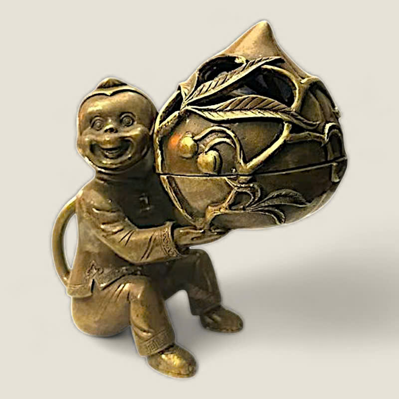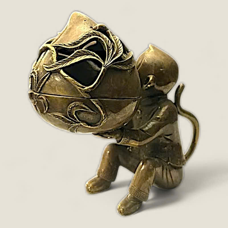 Thiết kế: Lư xông trầm có thiết kế độc đáo với hình tượng chú khỉ đang ôm một quả đào tiên lớn. Chú khỉ có dáng vẻ lanh lợi, tinh nghịch, khuôn mặt tươi cười. Quả đào có nắp đậy, nơi để trầm hương, giúp hương tỏa ra từ từ, tạo cảm giác thanh tịnh.