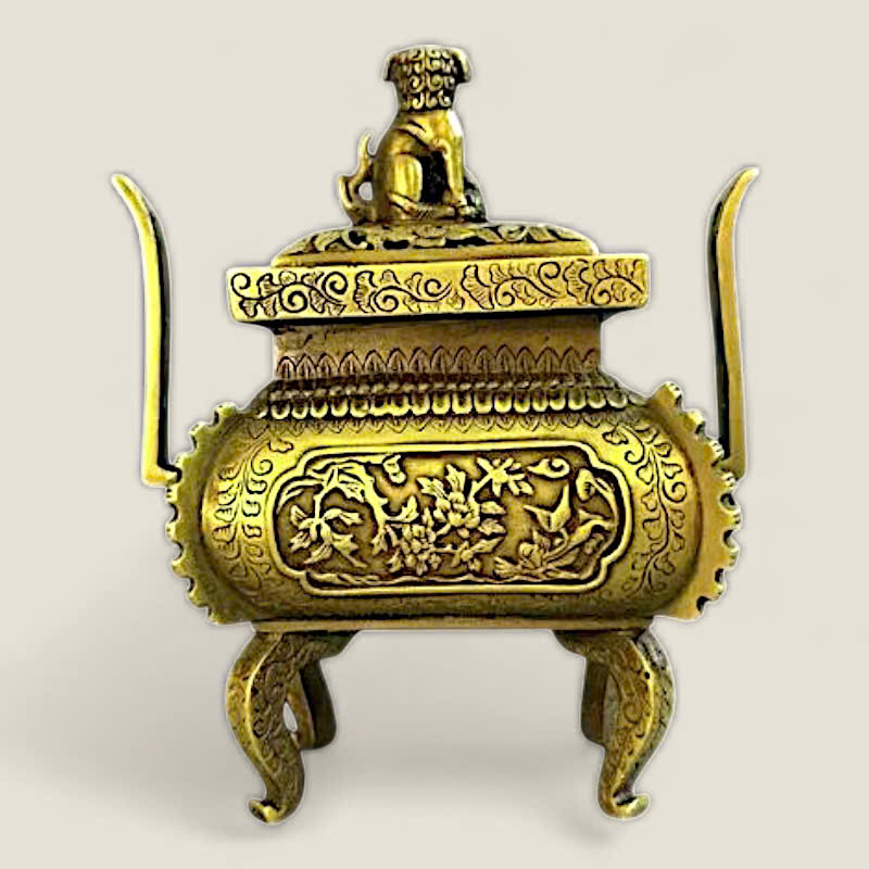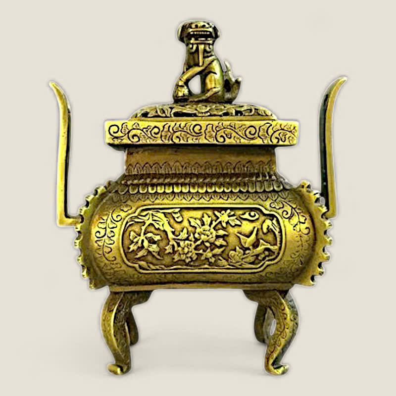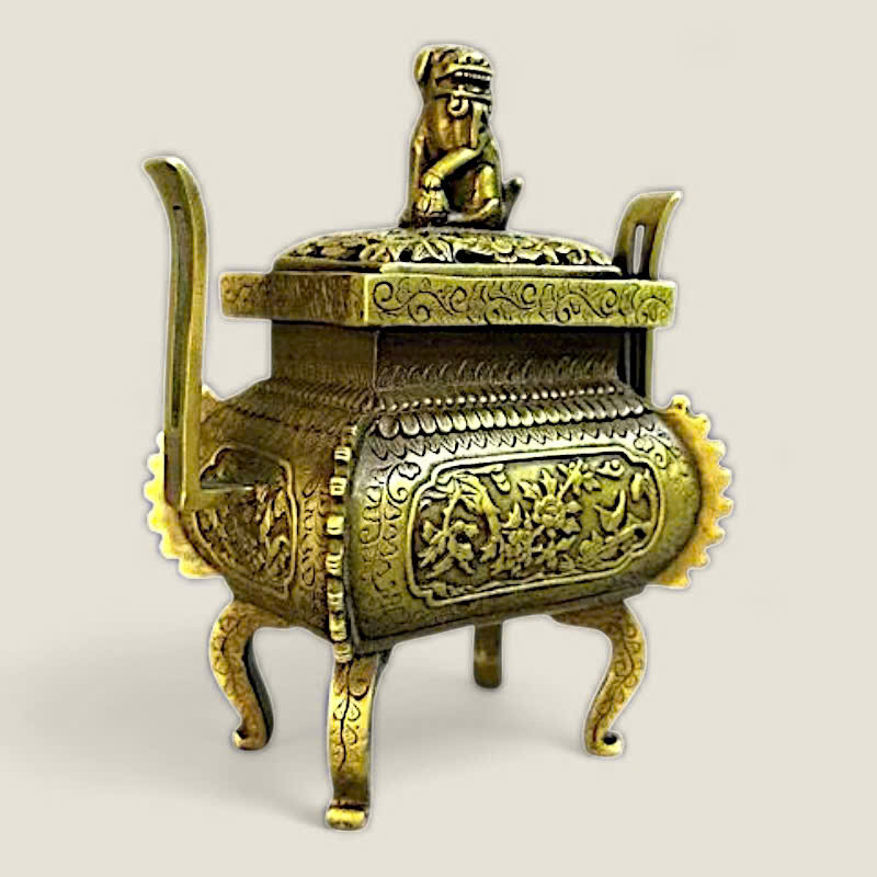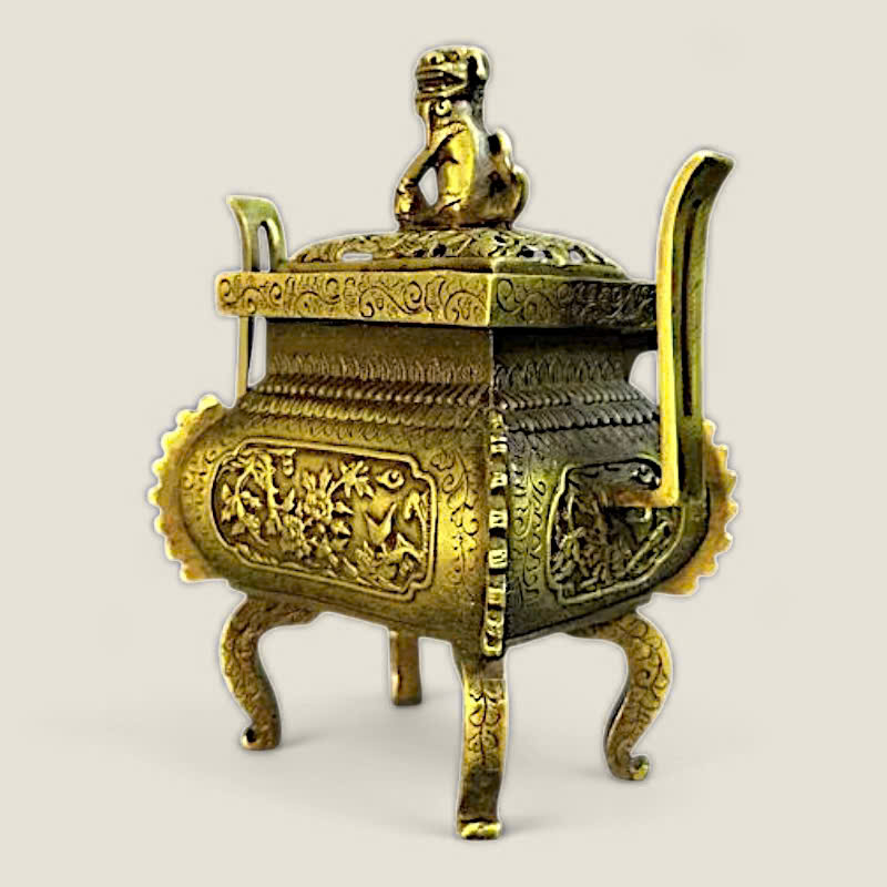 Chất liệu: Sản phẩm được làm từ đồng, đúc nguyên khối, đảm bảo độ bền và tính nghệ thuật cao. Bề mặt lư hương có màu đồng cổ kính, làm nổi bật đường nét chạm khắc.