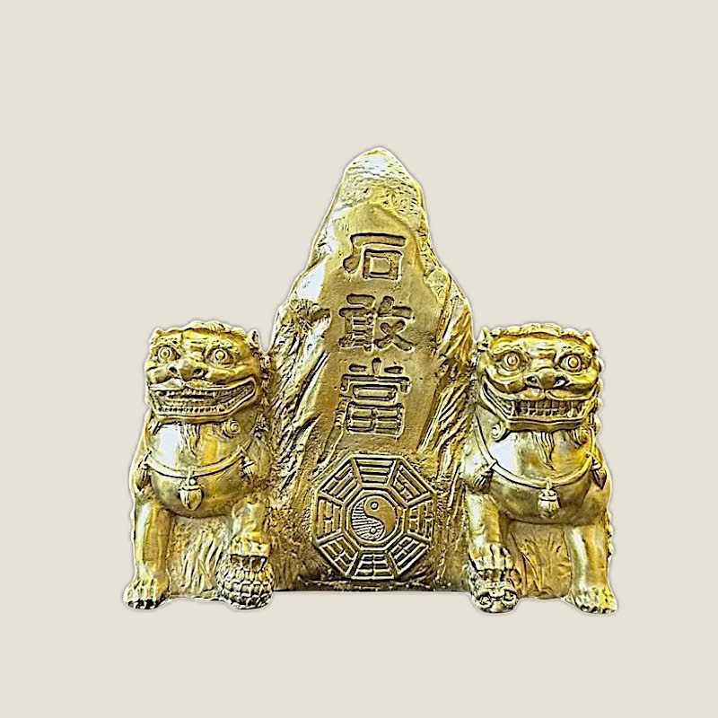 Ý nghĩa: Thái Sơn Thạch Cảm Đương là một bùa chú trấn trạch cổ xưa, kết hợp với sức mạnh của Lân Sư (Lân và Sư Tử) và Bát Quái, tạo nên vật phẩm có năng lực trấn yểm và hóa giải sát khí cực kỳ mạnh mẽ. Tượng mang ý nghĩa bảo vệ gia chủ khỏi mọi tai ương, xui xẻo và mang lại sự bình an, ổn định và tài lộc cho không gian sống. Sản phẩm thích hợp để trưng bày ở lối vào, phòng khách, hoặc các vị trí phong thủy quan trọng. Tượng Lân Sư Thái Sơn Thạch Cảm Đương